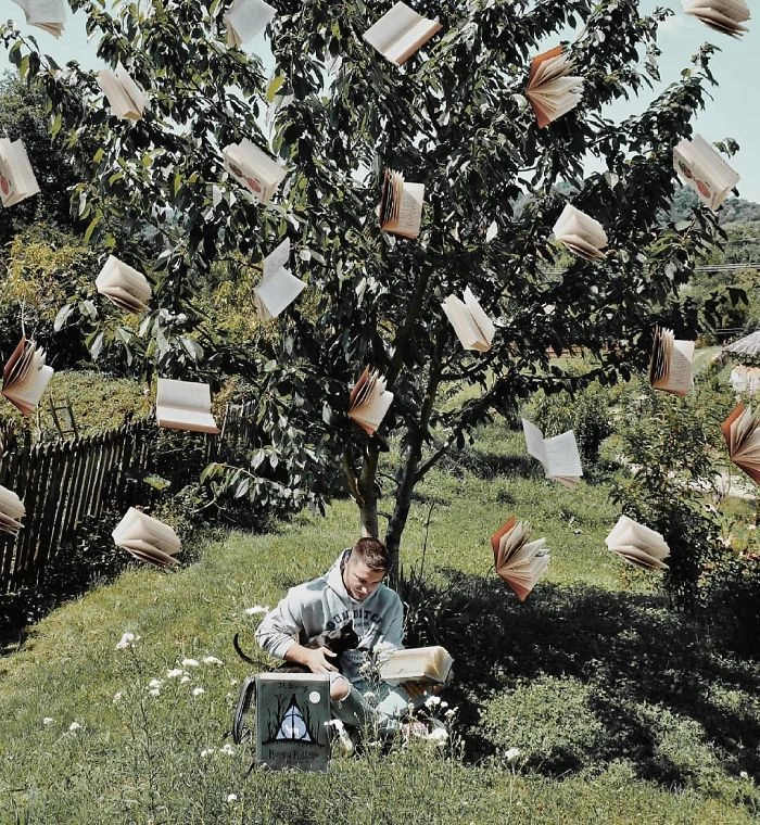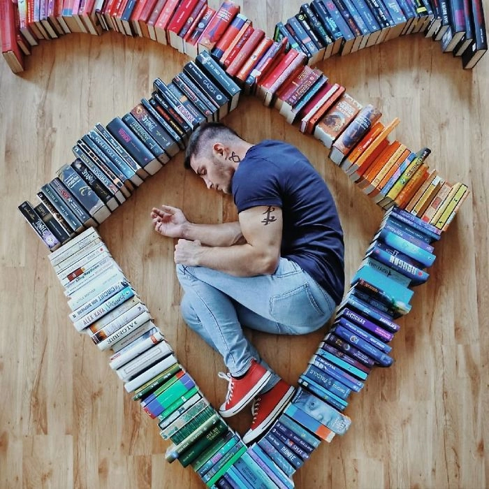 Брутальный книжный блогер покорил соцсети замысловатыми снимками