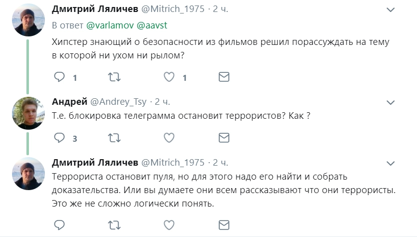 Среди пользователей были и те, кто поддержал блокировку мессенджера как эффективный метод борьбы с терроризмом.
