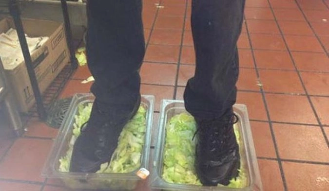 Трое сотрудников ресторана быстрого питания Burger King в Кливлэнде потеряли работу из-за фотографии, размещенной несколько дней назад на сайте 4chan.org. На ней видны ноги неизвестного, который топчется в двух коробках фирменного салата Burger King" с бобами, сообщает Stuff.co.nz.