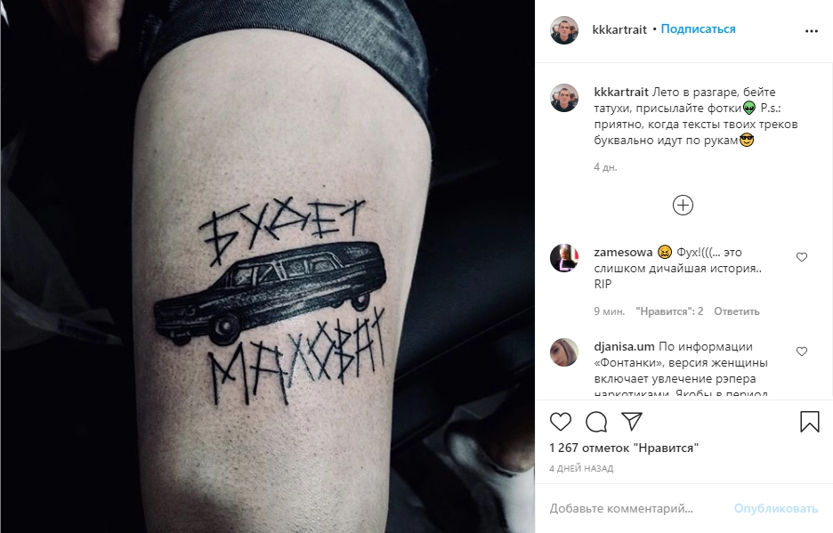 После того как стало известно о смерти рэпера, под постом появились свежие комментарии подписчиков. Некоторые из них сочли фото с татуировкой в каком-то смысле пророческим.