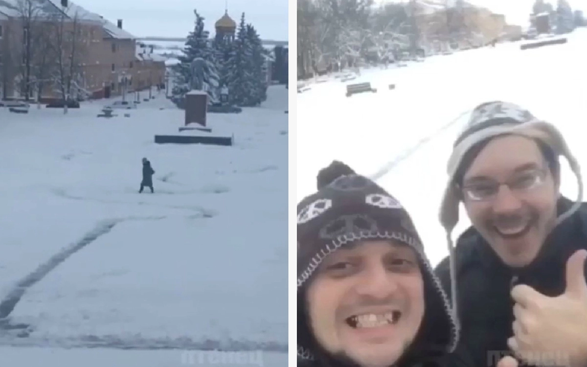 Было скучно: дворники-хулиганы превратили улицу в снежный лабиринт