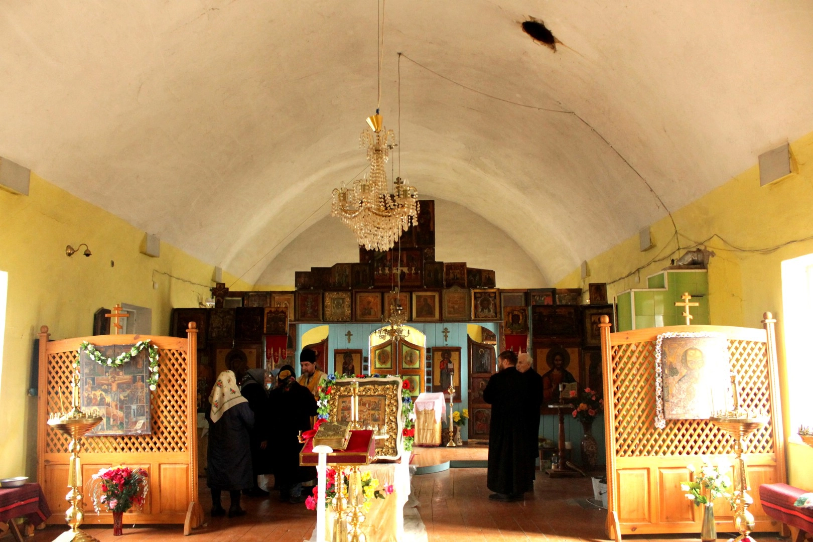 Всё это время в местном старообрядческом храме шли службы. Его настоятель, отец Александр, будучи гражданином России, во время оккупации подвергался особой опасности, однако не покинул общину и продолжал служить, в частности — в разгар боевых действий. Ополченцы ДНР, понимая, насколько рискует священник, предлагали вывезти его на санях, но он отказался, хотя вполне мог уехать к своей семье в Нижний Новгород и в самые тяжёлые дни ходил вокруг храма Покрова Пресвятой Богородицы с молитвой. Однажды каратели хотели его расстрелять, но прихожане, в массе своей — немолодые женщины, встали на защиту отца Александра и незваные «гости», явно не ожидавшие героизма от бабушек в платках, отступили…