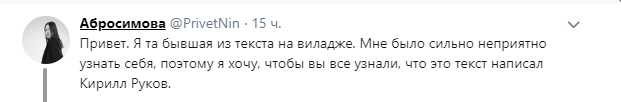 Позже она добавила, что их общие знакомые знали, что Кирилл писал этот текст, и поняли, что речь идет о ней.