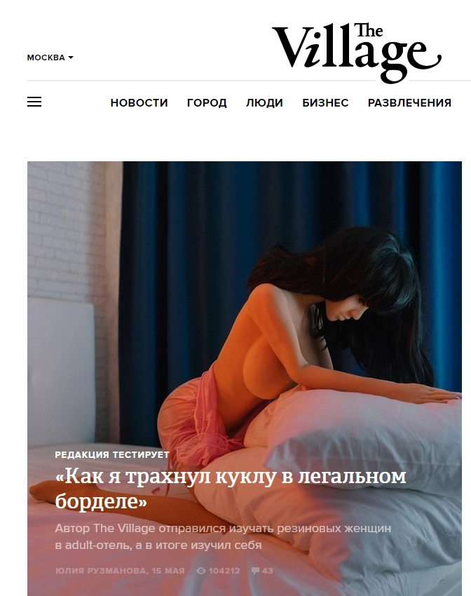 В Рунете разгорелся скандал из-за материала «Как я трахнул куклу в легальном борделе» в интернет-газете The Village. Журналист сходил в недавно открывшийся бордель, клиенты которого могут провести ночь с секс-куклой.
