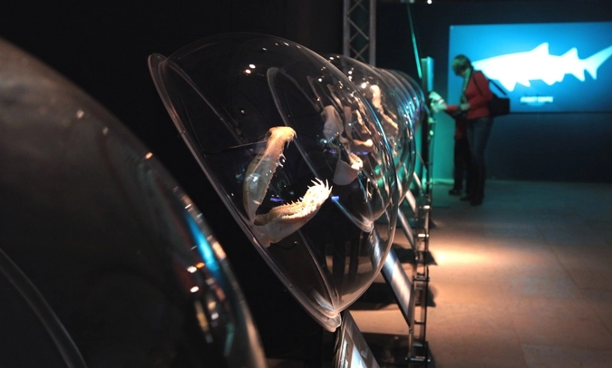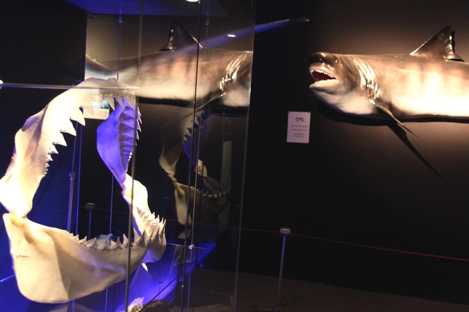 Экспонаты разделены на несколько тематических залов, что помогает порционно воспринимать информацию о самых впечатляющих хищниках океана.