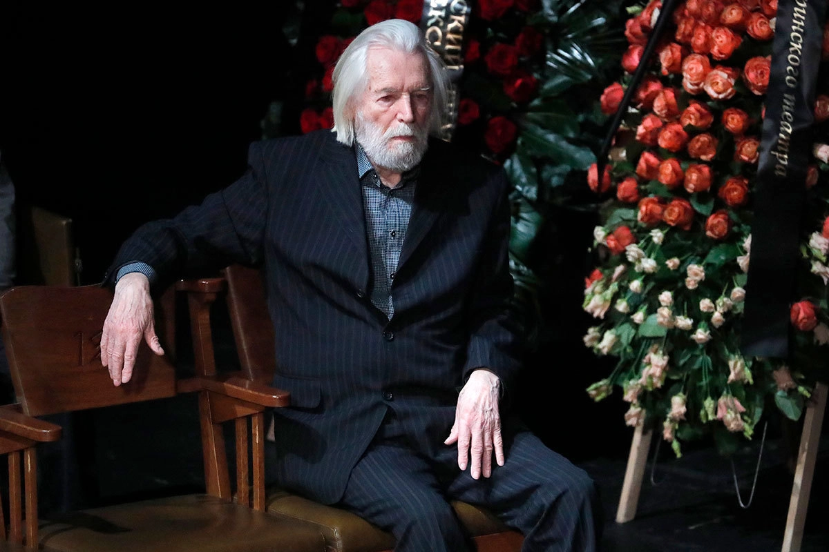 Актер Станислав Любшин во время церемонии прощания с актером Андреем Мягковым в МХТ имени А.П.Чехова