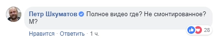 Пользователи соцсетей обратили внимание, что видео склеено из двух кусков. «Полное видео где? Не смонтированное?» — написал, в частности, координатор общественного движения «Синие ведерки».