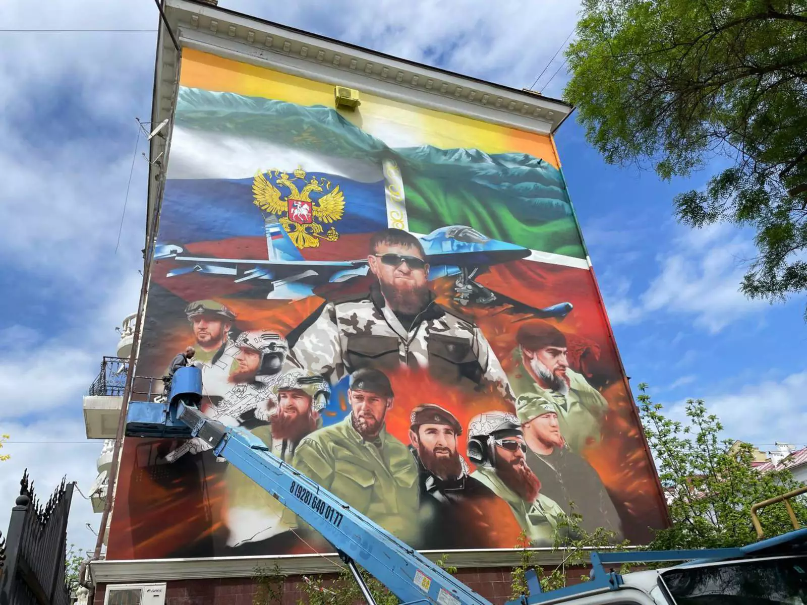 В Грозном рождается огромное патриотическое граффити. Прямо сейчас на пятиэтажке в центре города художники рисуют портреты чеченских бойцов, участвующих в военной спецоперации на Украине. Мурал также содержит горы, флаг Чеченской Республики и российский триколор.