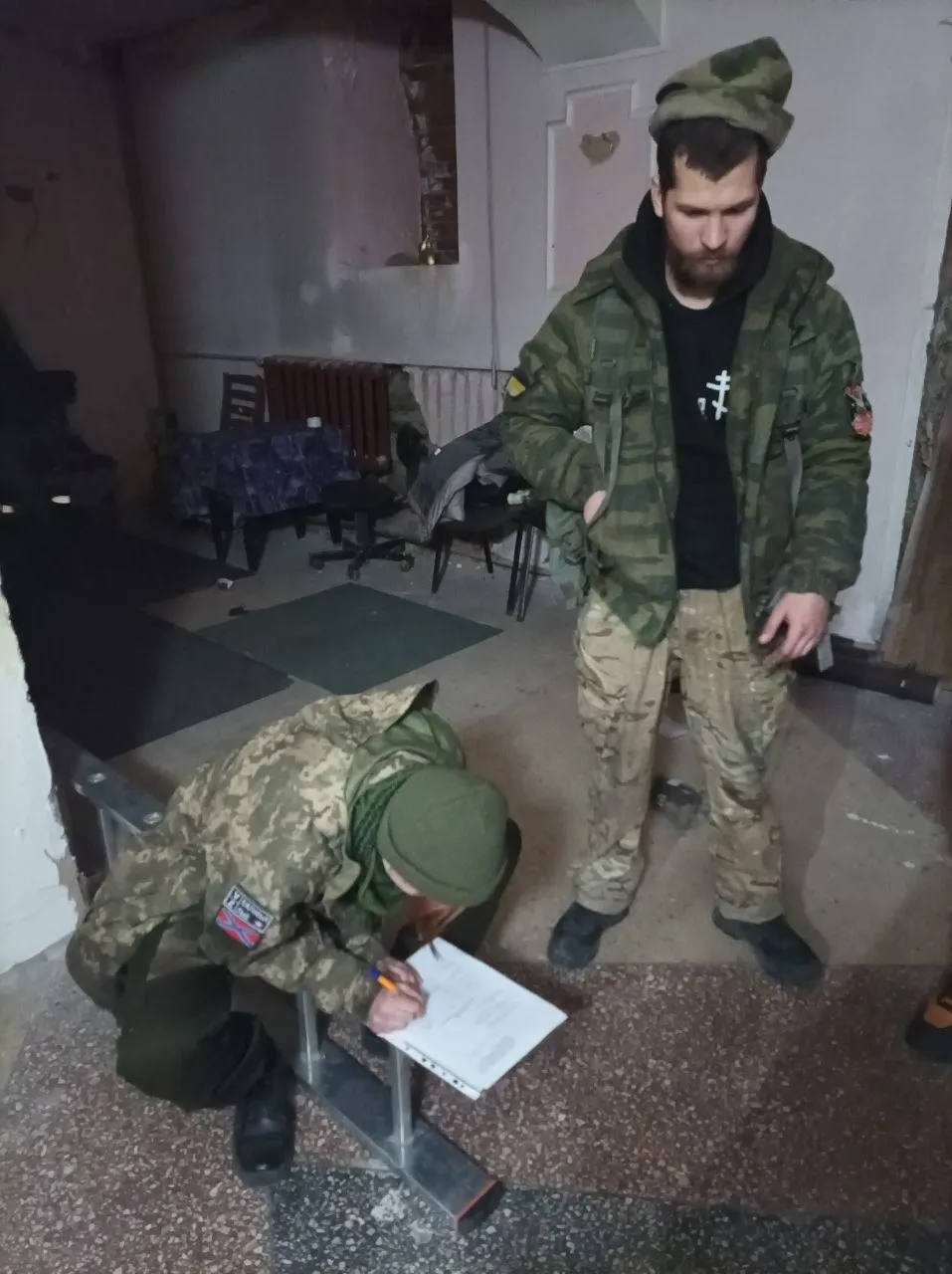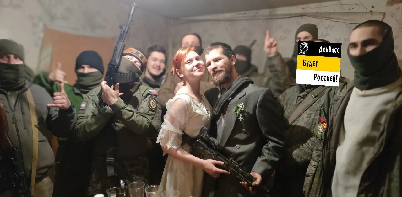 Свидетелями стали военкоры, приехавшие вместе с невестой. Командир одолжил жениху костюм, а у девушки-военкора случайно оказалось с собой белое платье. В расположении отряда, в деревенском доме, поставили стол, накрыли покрывалом и зажгли свечи. В гости пришло почти всё подразделение. На импровизированном венчании не было ни церкви, ни священника, ни хора. Были венцы, сплетенные из ивовых прутьев с деревенского участка, вино, налитое в обычную кружку, и настоящие клятвы.