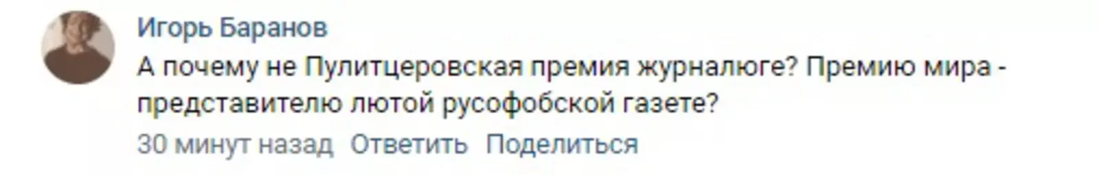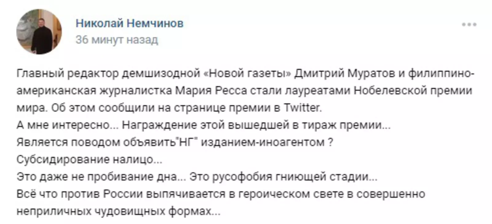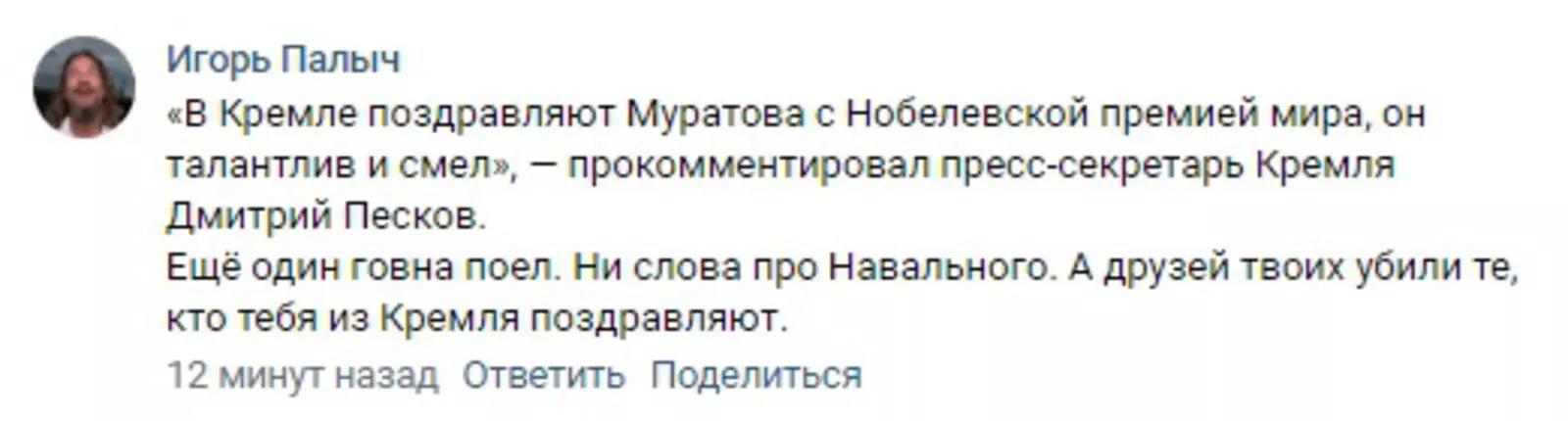 Чекист или русофоб? Как Рунет встретил Нобелевскую премию главреду «Новой»