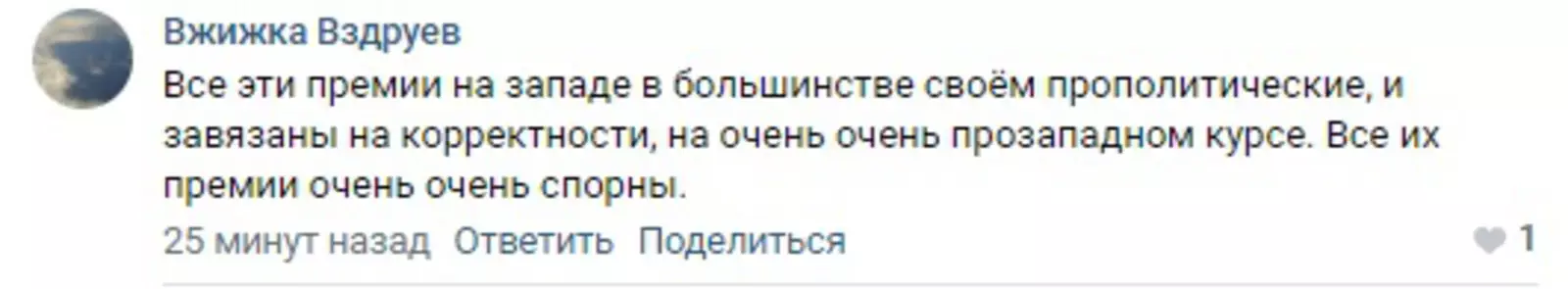 В то же время многие комментаторы патриотического толка встретили награждение главного редактора «Новой» с отторжением — как из-за политики редакции, так и из-за репутации Нобелевской премии мира в РФ как способа поощрения лояльных Западу деятелей. Муратова и его издание не раз обвиняли в «русофобии».