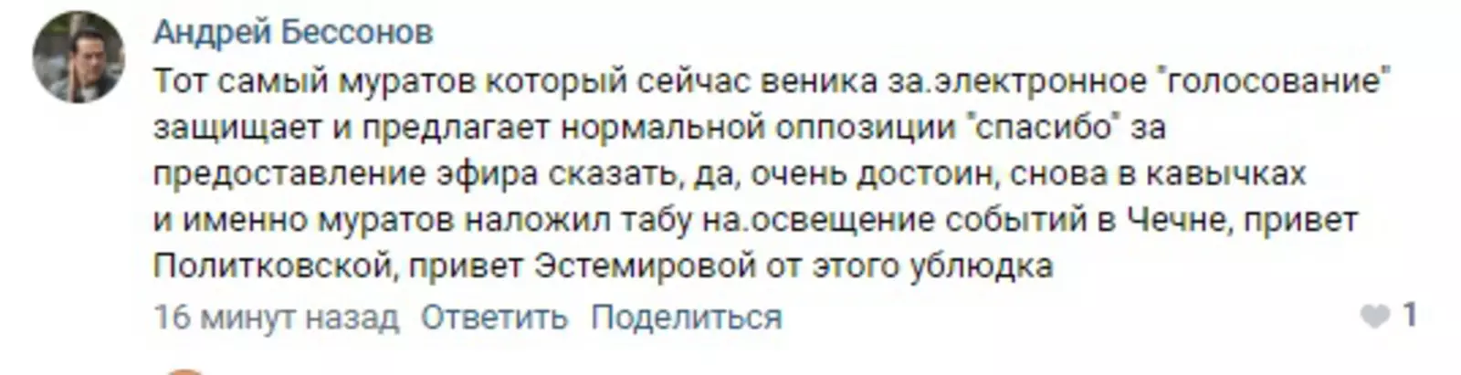 Новость о присуждении Нобелевской премии Муратову огорчила многих даже в оппозиционных кругах, где «Новая газета» пользуется авторитетом. Комментаторы с этого фланга остались недовольны тем, что премию мира не дали осужденному блогеру Алексею Навальному. Некоторые из них объявили награждение Муратова результатом интриг Кремля, а его самого — «чекистом».