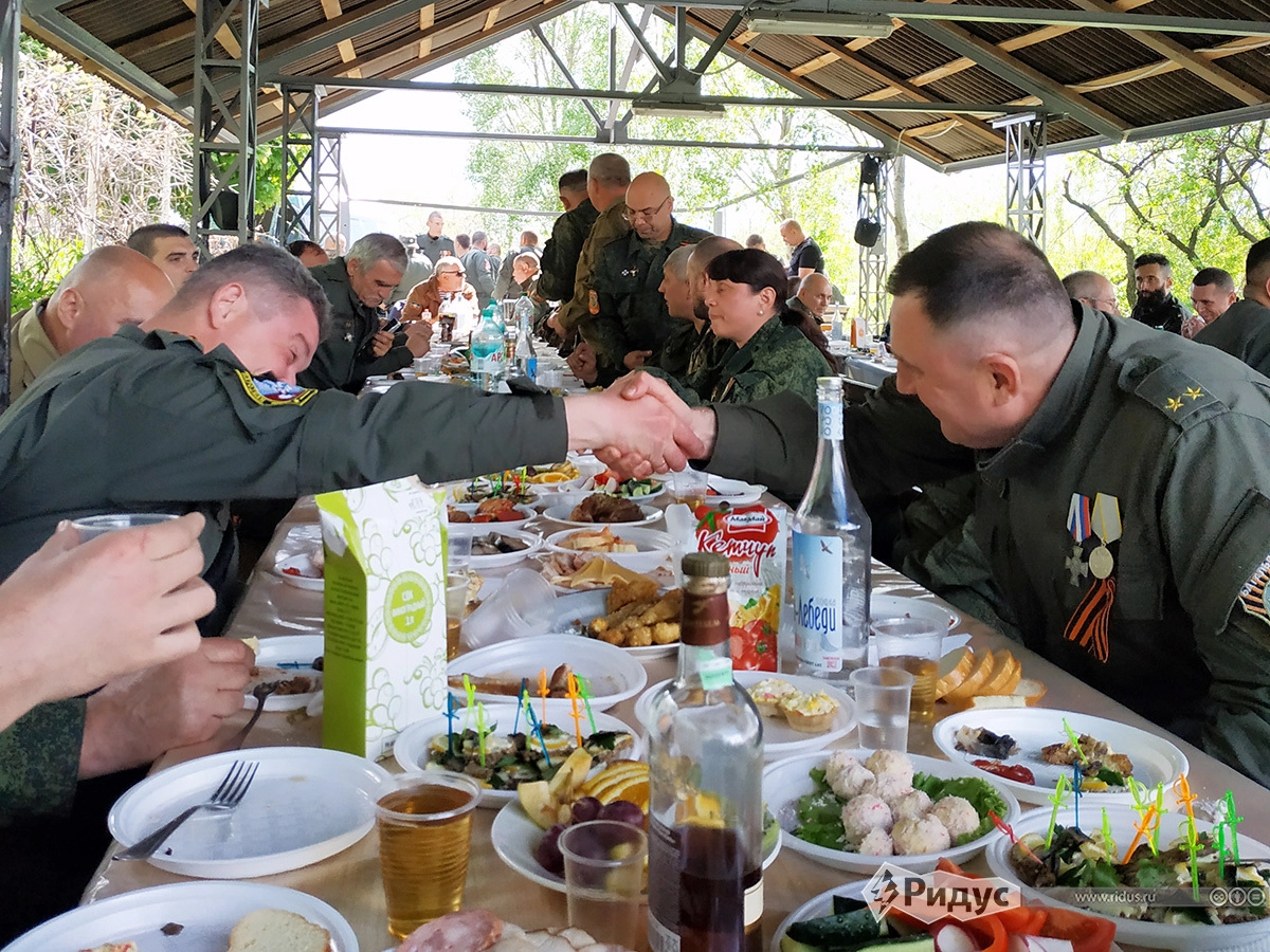 Первый тост — за погибших, не чокаясь. Ходаковский говорит речь: «Вы должны понимать, что мы, ваши командиры, в свое время просто организовали ваш порыв. Главные — все равно вы. На ваших плечах стоит Донбасс, на ваших плечах стоит Россия».
