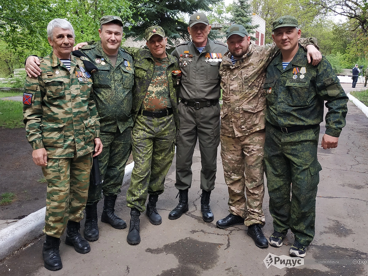 Мужчины еще долго вспоминают лето 14-го: какого-то Джонни, который разбирал противотанковую мину на столе в располаге и от которого каждое подразделение пыталось избавиться, Саур-Могилу, где сидели в тени от стелы — жара была адская, украинские авиационные обстрелы — «очень страшно! Он зайдет, выпустит ракеты, и тут сиди гадай, куда она прилетит». Подходит Олег Ветер, офицер и автор гимна «Востока» — высокий мужчина возраста цезаря, воевал еще в Афгане. Бойцы моментально обступают его: «Вот у кого интервью надо брать!» Я фотографирую ветеранов с Ветром.
