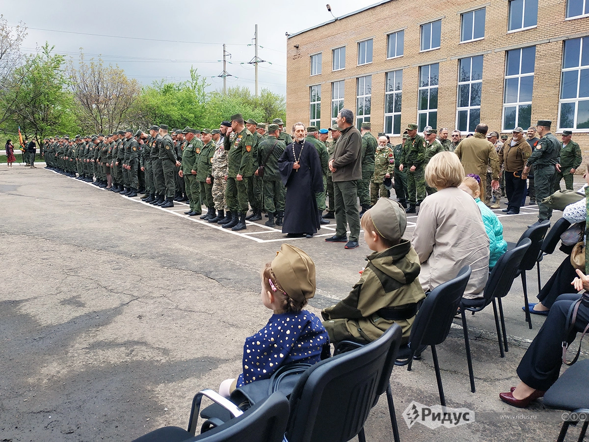 Бойцы уже выстроены на плацу, сначала стоят действующие, ныне это в/ч Народной милиции ДНР, а никакой вроде бы не «Восток», но… все равно — «Восток». С краю — ветеранская колонна. Дальше — стулья для гостей: жены, дети.