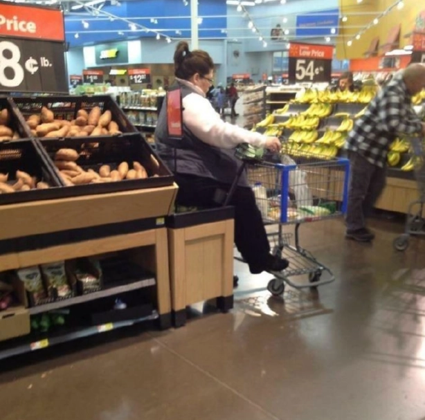 4. Просто покупательница, которая решила сесть и передохнуть… Вот только села она на фрукты!!!