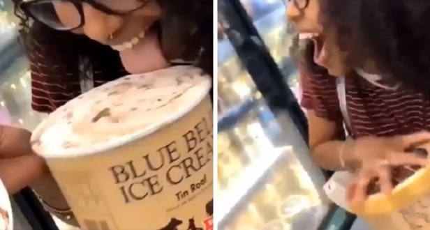 7. Девушка решила, что забавно будет запустить челлендж, смысл которого облизать мороженое и поставить его обратно на прилавок. НЕТ, НЕ ЗАБАВНО