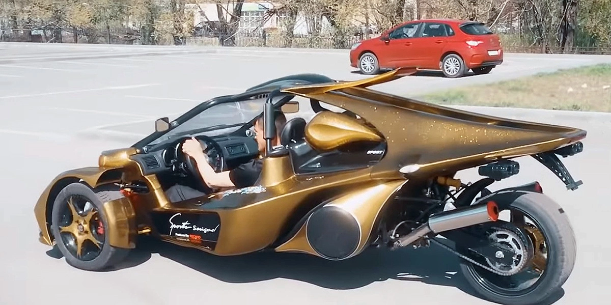 В итоге в основу конструкции лег 100-сильный мотор от мотоцикла Kawasaki, приводящий в движение единственное заднее колесо. По оценкам авторов материала, с 0 до сотни километров в час трайк ускоряется примерно за 5 секунд.