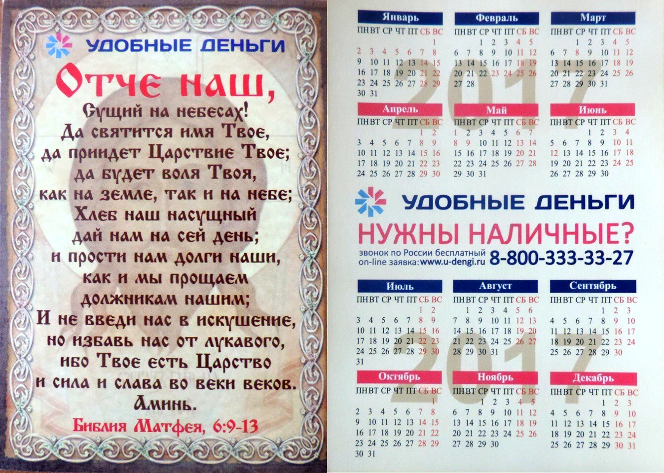 Челябинская микрофинансовая компания может пойти под суд из-за рекламных календарей с изображением Христа и молитвой «Отче наш».