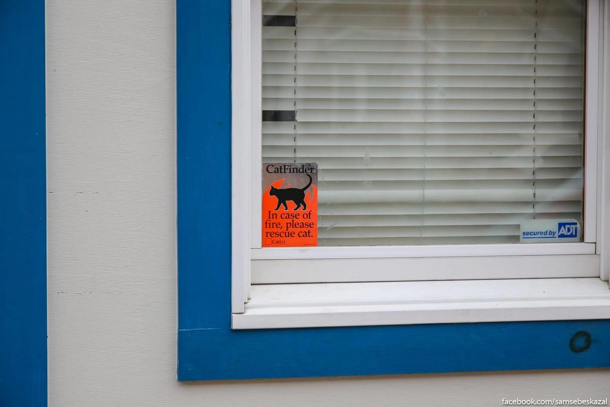Интересная наклейка. В случае пожара, пожалуйста, спасите кота.