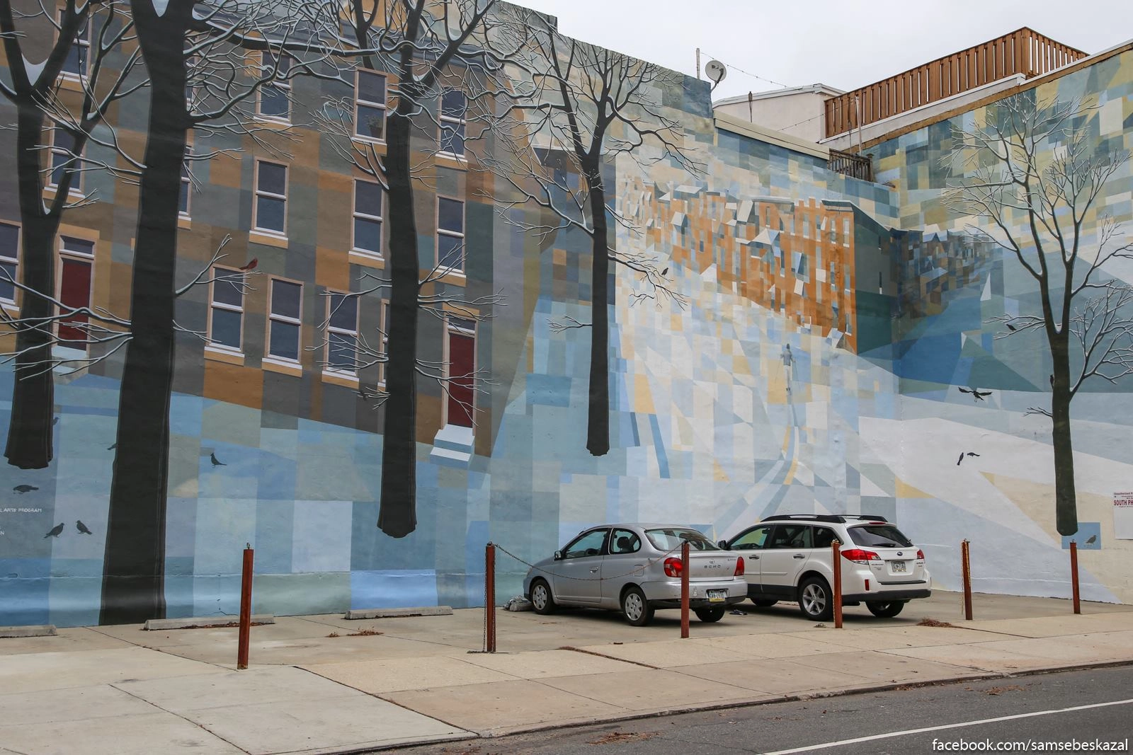 В Филадельфии очень много художества на стенах. Причем качественного и кем-то правильно организованного. От этой работы прям повеяло питерской зимой.
