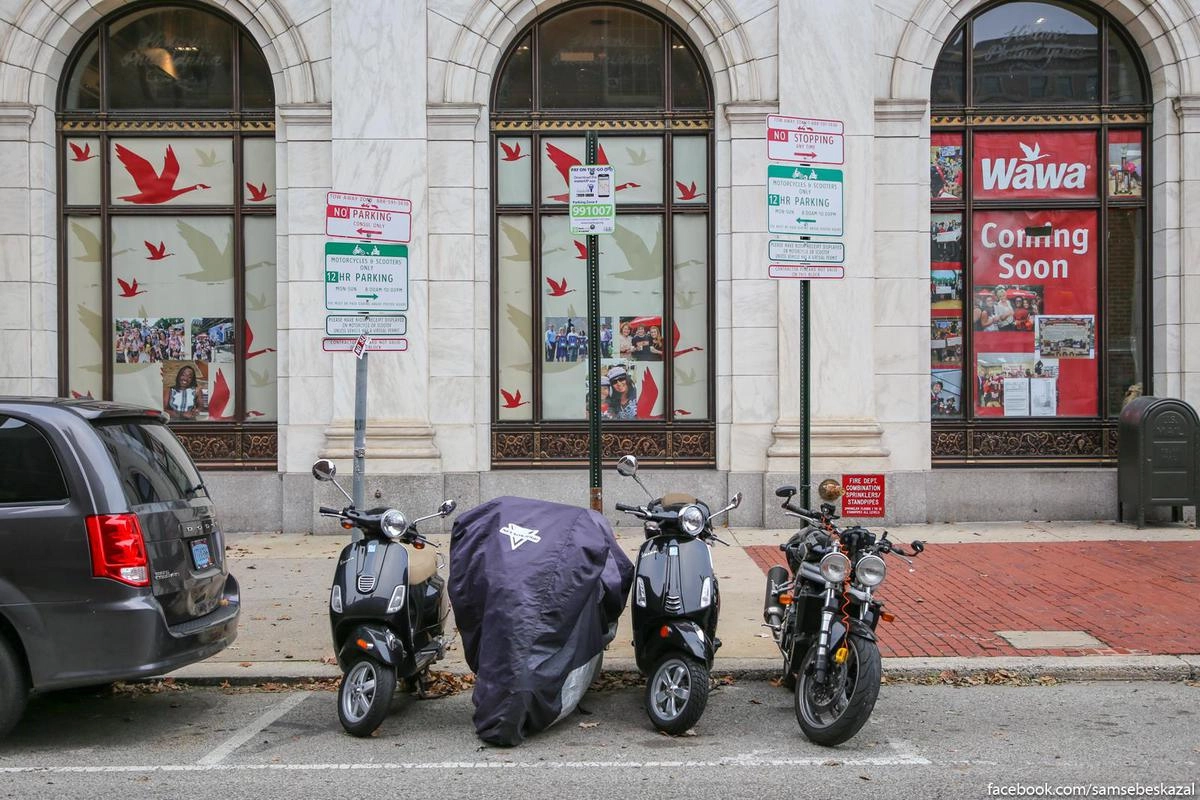 В Филадельфии с парковками в центре дело обстоит не лучше, а местами даже хуже, чем в Нью-Йорке. Единственные, кому относительно хорошо, это двухколесные транспортные средства. В специально выделенных местах их можно парковать на целый день. На машине днем два часа максимум. А то и всего час.