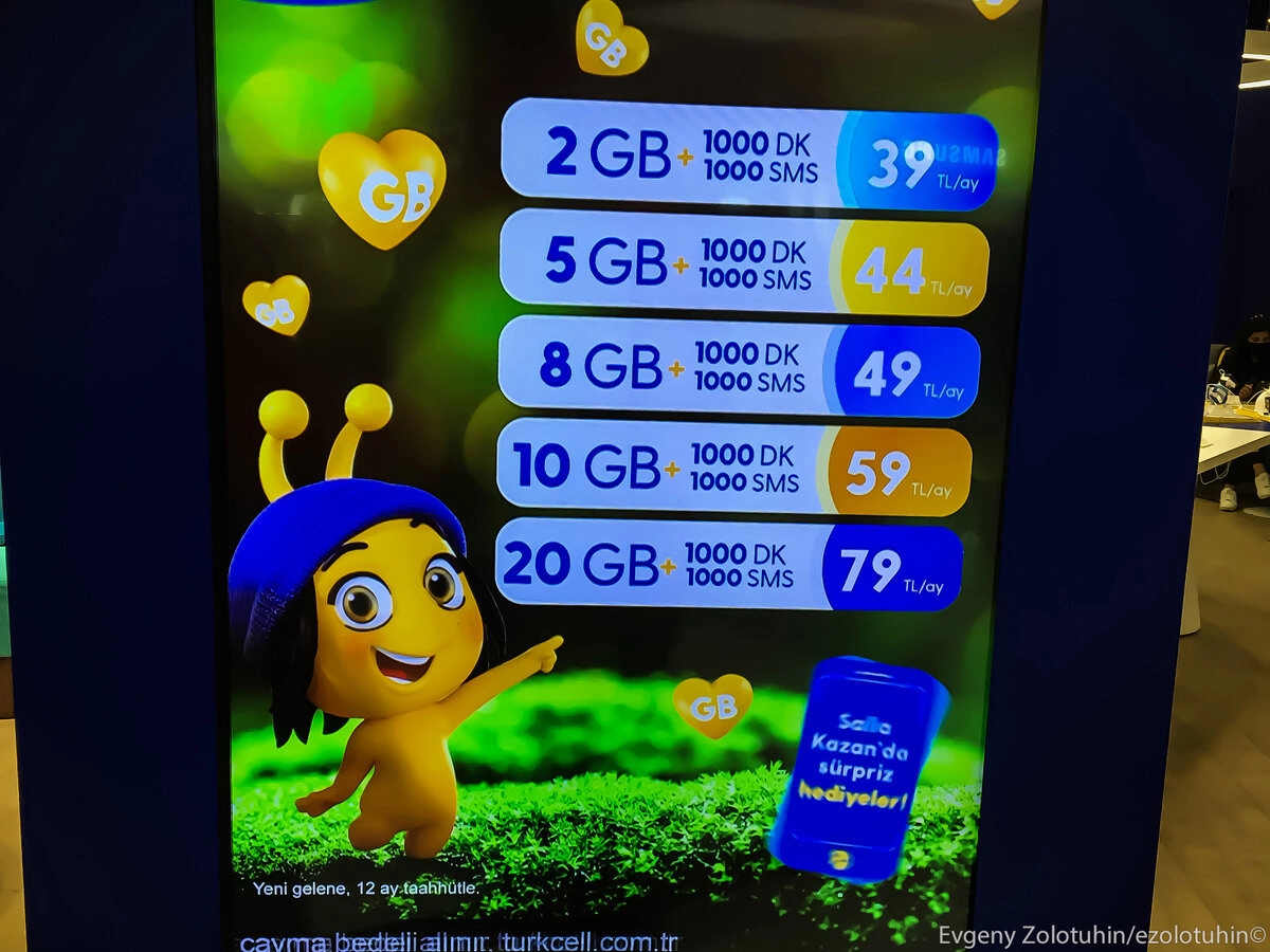 Турция пошла по последнему варианту. Во-первых, турецкая сим-карта стоит очень дорого, в районе 1500 рублей турецкие операторы просят просто за саму карточку (кажется, такого нет больше нигде), еще столько же попросят за самый минимальный тариф!