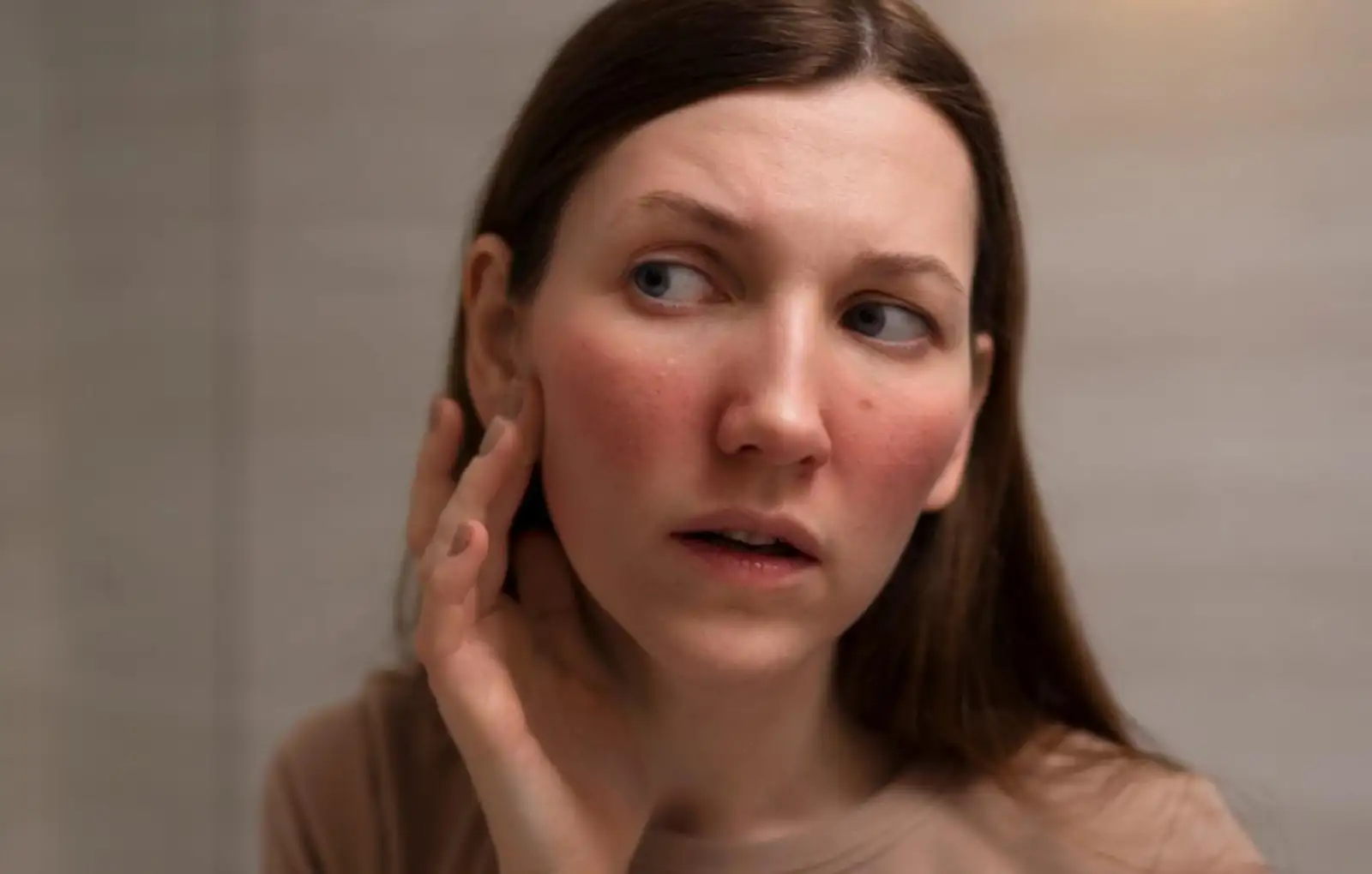 Розацеа же характеризуется устойчивым розово-красным фоном (эритемой), на котором заметны расширенные сосуды. Ключевое отличие — появление симптомов гиперактивности кожи: чувства жара, пульсации, «приливов», которые длятся долго. Со временем эти эпизоды учащаются, становятся интенсивнее и, при отсутствии лечения, приводят к увеличению площади поражения.