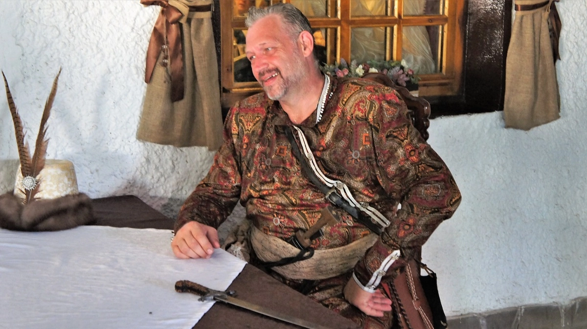 «Обеды начинались обыкновенно кругликом (пирогом) с рубленым мясом и перепелками. За ним следовало 8 или 10 холодных блюд: студень, сек (разварная филейная часть говядины), лизни (языки говяжьи), приправленные солеными огурцами. Полотки из поросенка, гуся, индейки, се на разных блюдах. Часть дикой свиньи в разваре, лебедь, соленый журавль и проч. После холодных подавали горячие, также до 10 блюд: щи, похлебку из курицы, сваренной с сарацинским пшеном и изюмом. Моркву,
