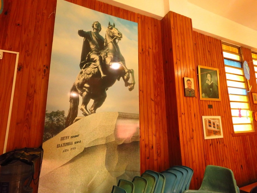 Поэтому оформление данного клуба — оно крайне оригинально. Тут тебе портреты императоров, портреты русских полководцев — Суворова, Кутузова, и всякие православные символы.
