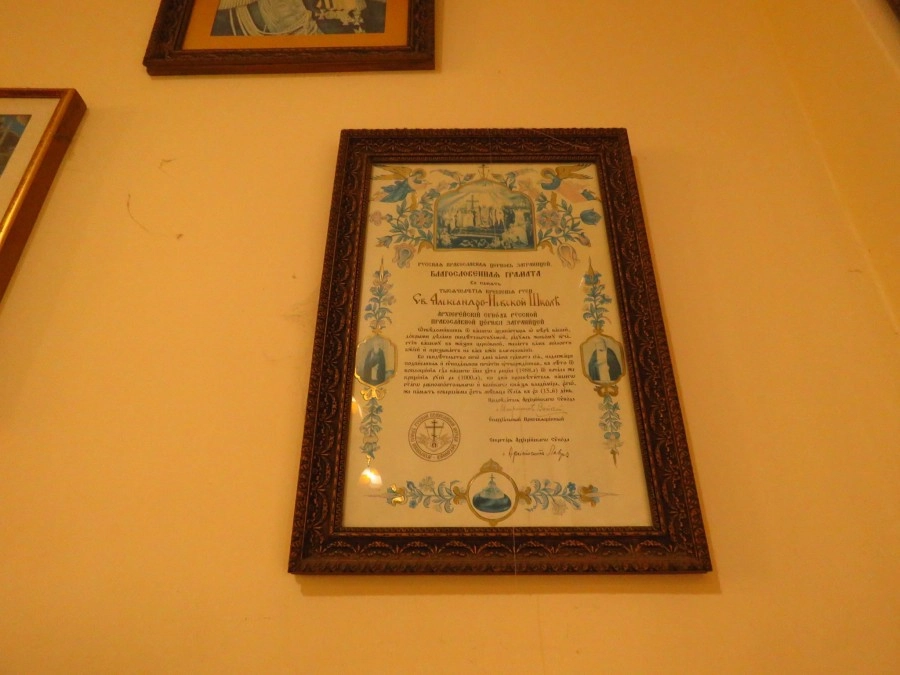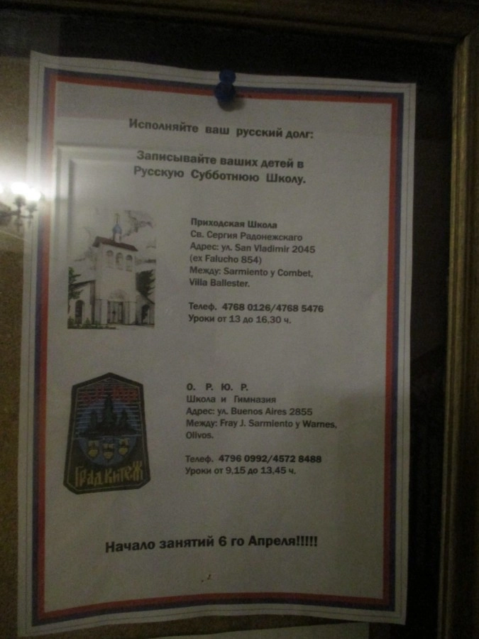 Ну и тут же реклама вышеупомянутой школы. Как я говорил — она, как бы, при этом храме. Все работники ходят сюда на службы. Ну и вообще, как известно, храмы в заграничье по факту используются не столько для проведения служб, сколько для встреч диаспоры, соотечественников, обмена информацией