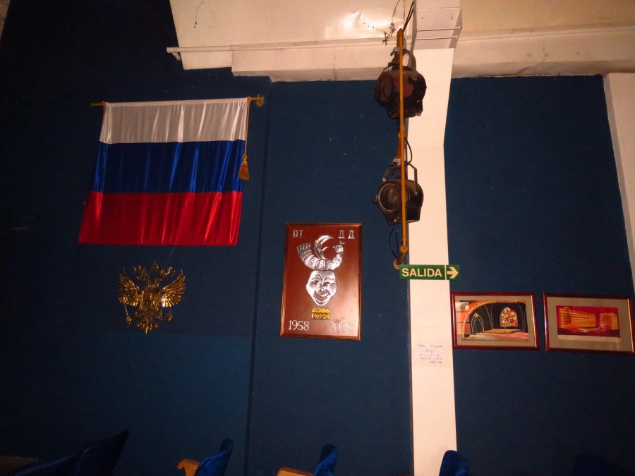 Если помните, то в дореволюционных театрах были суфлёры. Потом их отменили, но вот поскольку тут всё, как бы, «дореволюционное», то для суфлёров место предусмотрено.