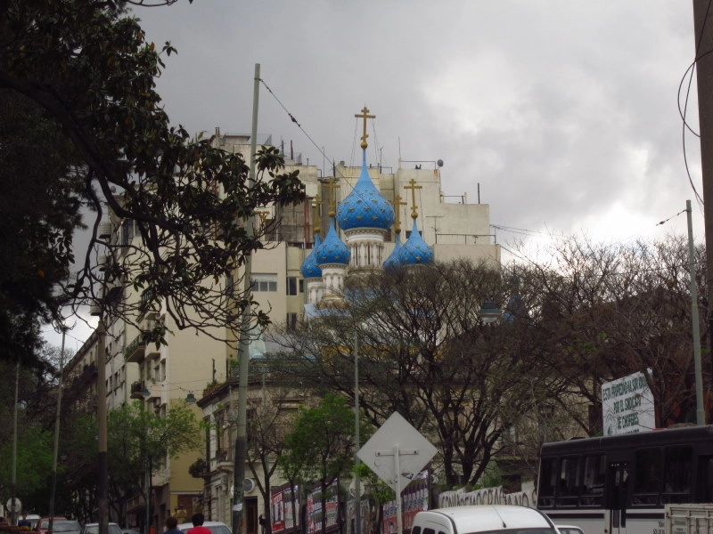 Но пока на этом временно закончим и перейдём к более знакомых российскому туристу вещям. Вот эту церковь наверяка видели все, так или иначе бывавшие в Буэнос-Айресе. Эта православный храм Святой Троицы, находится он на границе районов Сан-Тельмо и Ла-Бока. Построен он был в конце 19 века по просьбе православной общины и на фоне расцвета российско-аргентинских отношений.