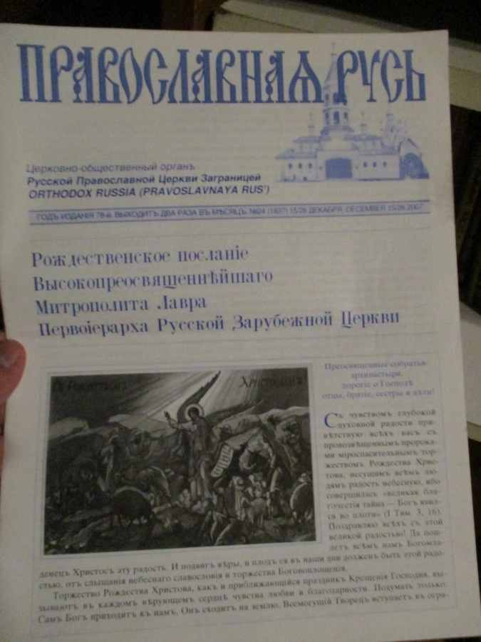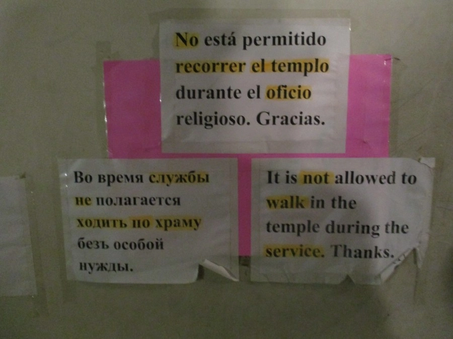К сожалению, в церкви запрещается фотографировать. О чём повсеместно висят объявления на трёх языках. Так что пришлось это делать аккуратно и незаметно, и самые незначительные вещи. Но зато у них есть подборка журналов разных годов. И все они написаны вот этой грамматикой.