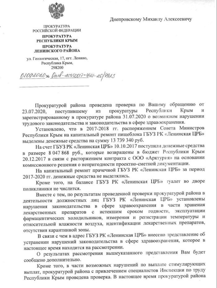 Надо сказать, что огласка «Дела Ленинских врачей» вызвала интерес среди представителей компетентных органов. Министерству здравоохранения Крыма и УФАС поручено провести внеплановую проверку деятельности медучреждения.
