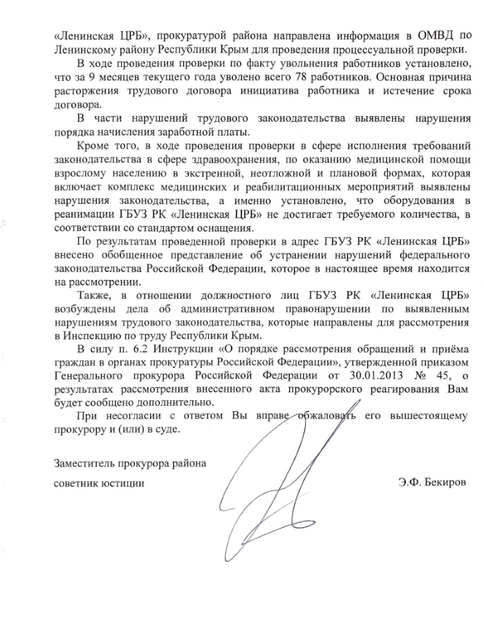 К сказанному следует добавить, что многие из сотрудников больницы не хотели терять работу, но были вынуждены написать заявление об увольнении под давлением администрации больницы. Теперь недовольные главврачом бывшие сотрудники ЦРБ готовы давать показания против своего недавнего руководителя.