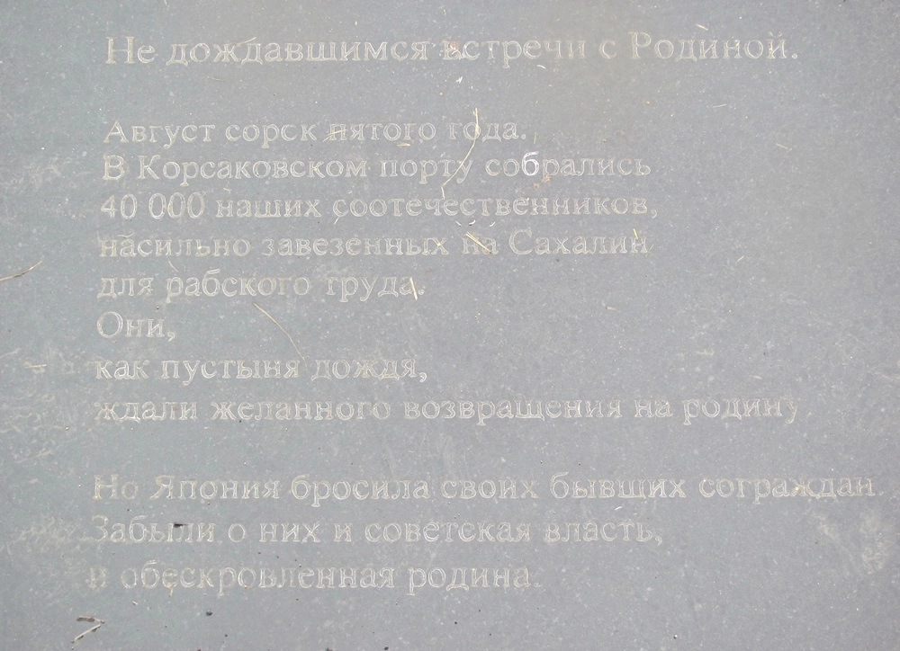 Необычный памятник корейцам, которые были завербованы для работы на японском Южном Сахалине и в августе 1945 года, когда начались военные действия, находились тут, в Отомари…