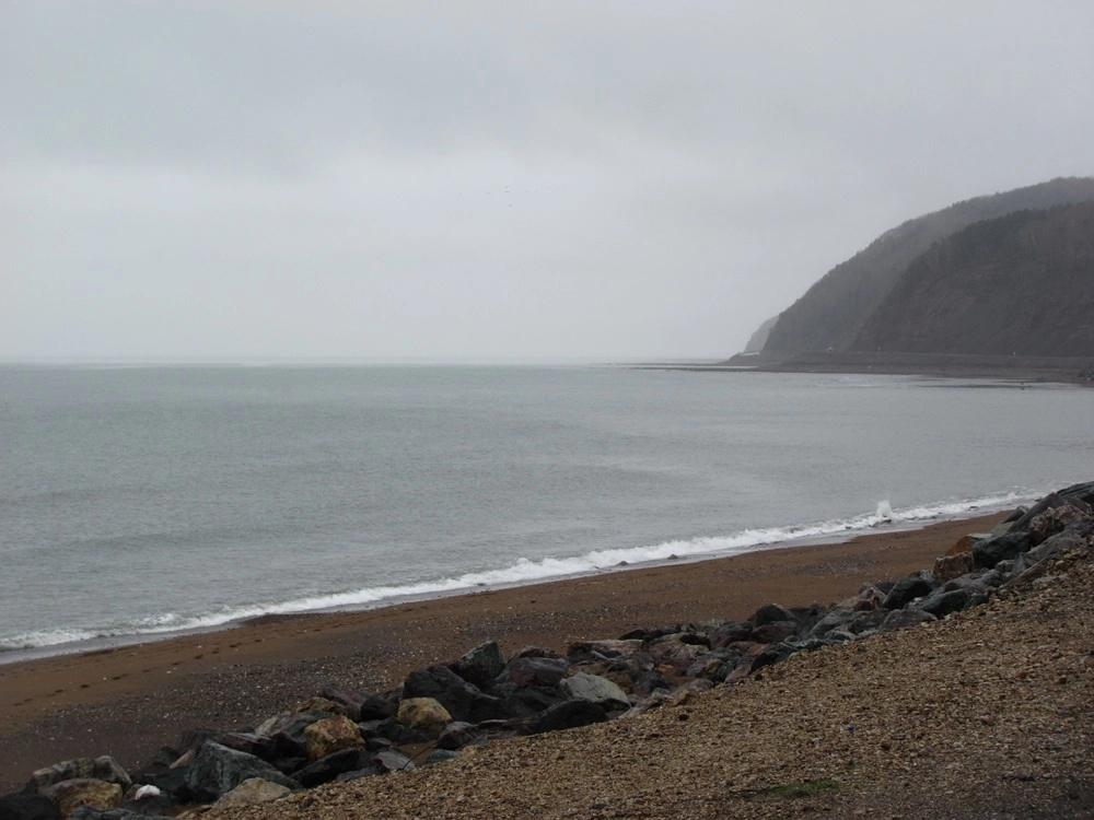 На подъезде к «Пригородному» делаем остановку в живописном местечке на берегу моря — шум прибоя, коричневато-золотистый песок, акварельные краски облаков и сопок.