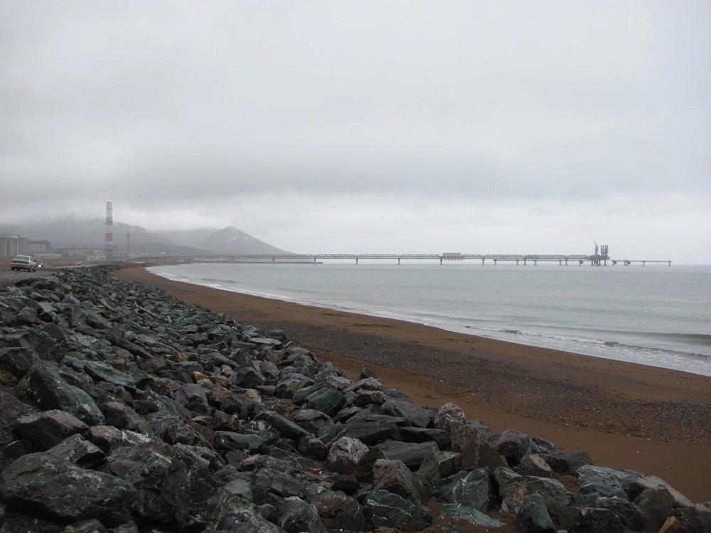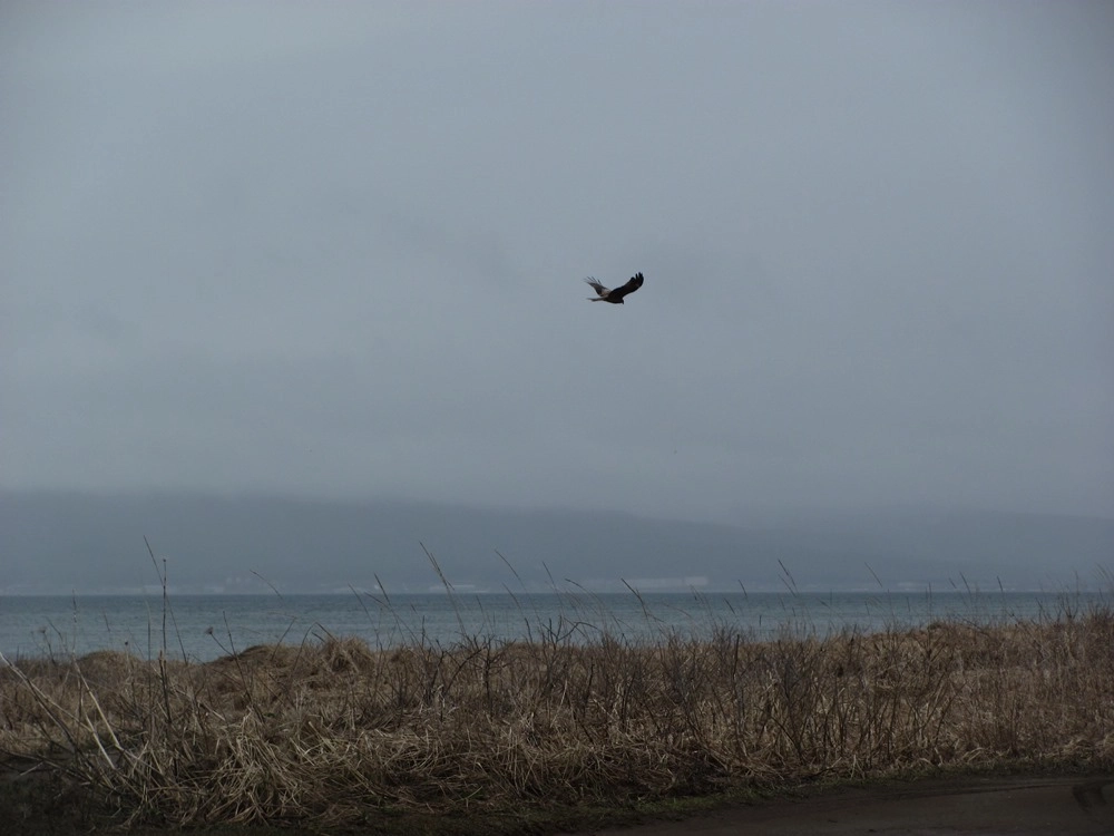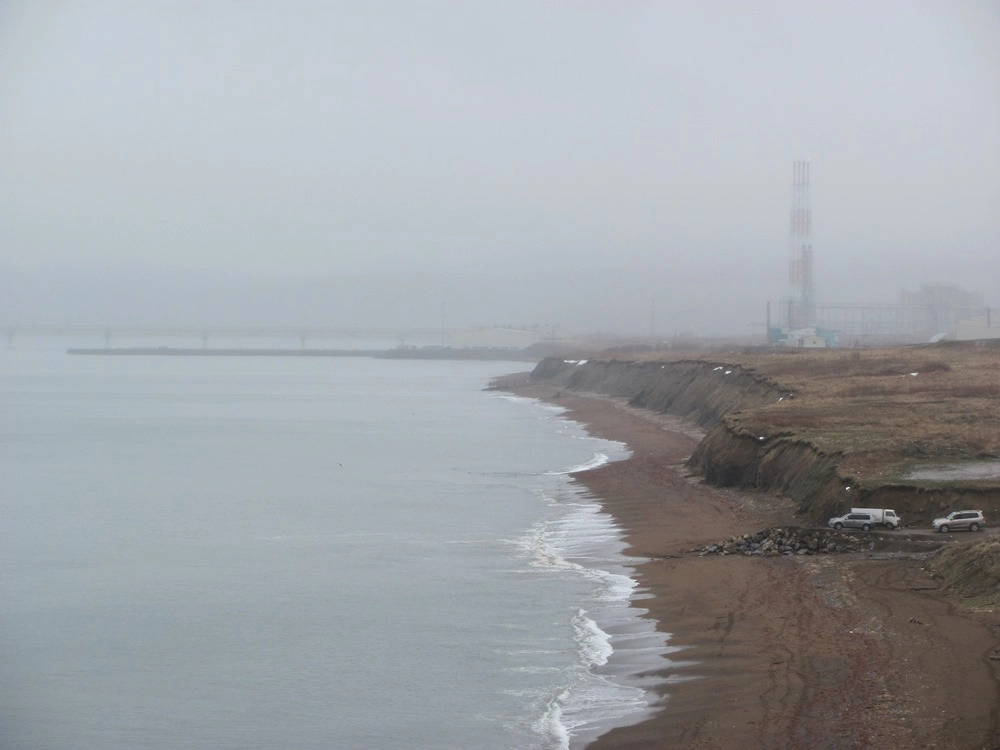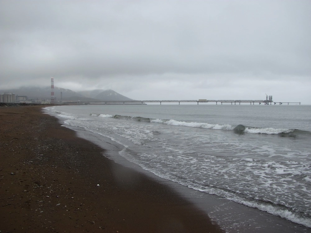 К юго-востоку от Корсакова неподалеку от побережья находится система связанных между собой озер — Вавайское, Изменчивое, Тунайча, Буссе. Последнее озеро, Буссе, по сути является морской лагуной, отделенной от моря длинной песчаной косой, но связанной с ним в одном месте протокой. Как показала карта, добраться до этих озер от Корсакова возможно — от города как раз в том направлении идёт дорога практически все время вдоль побережья. Ну что же, план действий понятен — берем такси движемся по направлению к озерам. Таксист оказался интересный, разговорчивый, давно живущий в этих краях (он приехал сюда 30 лет назад после армии, по, как тогда было распространено, профсоюзной путевке, долгое время работал мотористом на траулерах, исходил все окрестные воды, в том числе был и на Аляске) — и конечно он прекрасно знал, куда нам надо ехать, и даже сам предложил дивный маршрут: от Корсакова по трассе вдоль побережья, посмотрим новейший газоперерабатывающий терминал Пригородное, затем завернем на одно небольшое озерцо в районе Озерского, а далее свернем с трассы и по бездорожью песчаной косы поедем на самую дальнюю её точку, где озеро Буссе соединяется с морем узкой протокой. От Корсакова до производственного комплекса Пригородное ведет недавно построенная шикарная 13 километровая трасса — практически автобан, а вот дальше дорога будет конечно не столь роскошной…