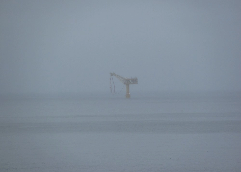 Вдали в море выносное причальное устройство для загрузки нефти на танкера — симпатичный такой «краник»!
