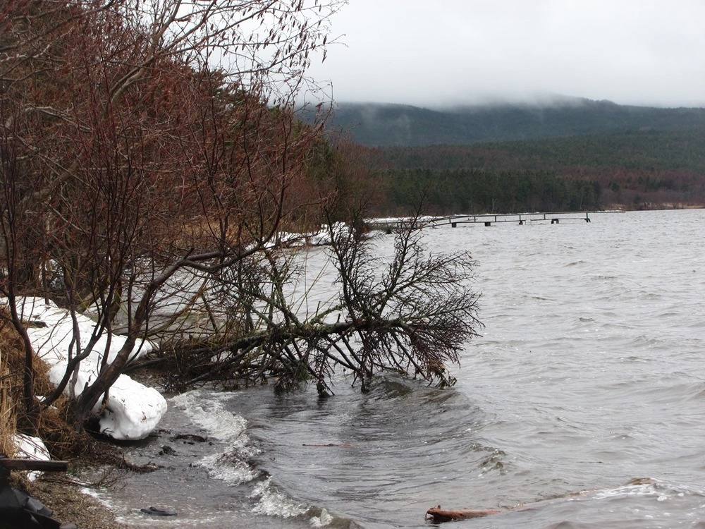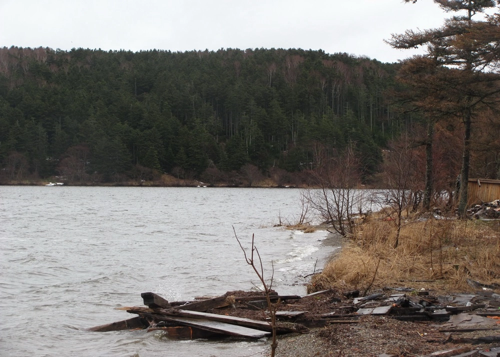 Как и везде в нашей стране, нищета и богатство существуют бок о бок — Сахалин в этом плане показательный пример: построенный по самым новейшим стандартам суперсовременный газоперерабатывающий и нефтеотгрузочный терминал соседствует с нищими разрушающимися рыбсовхозами и прибрежными поселочками, проехав сквозь один из которых и свернув на неприметную дорогу возле бывшего стадиона, мы выезжаем на берег озера Малое Чибисанское.