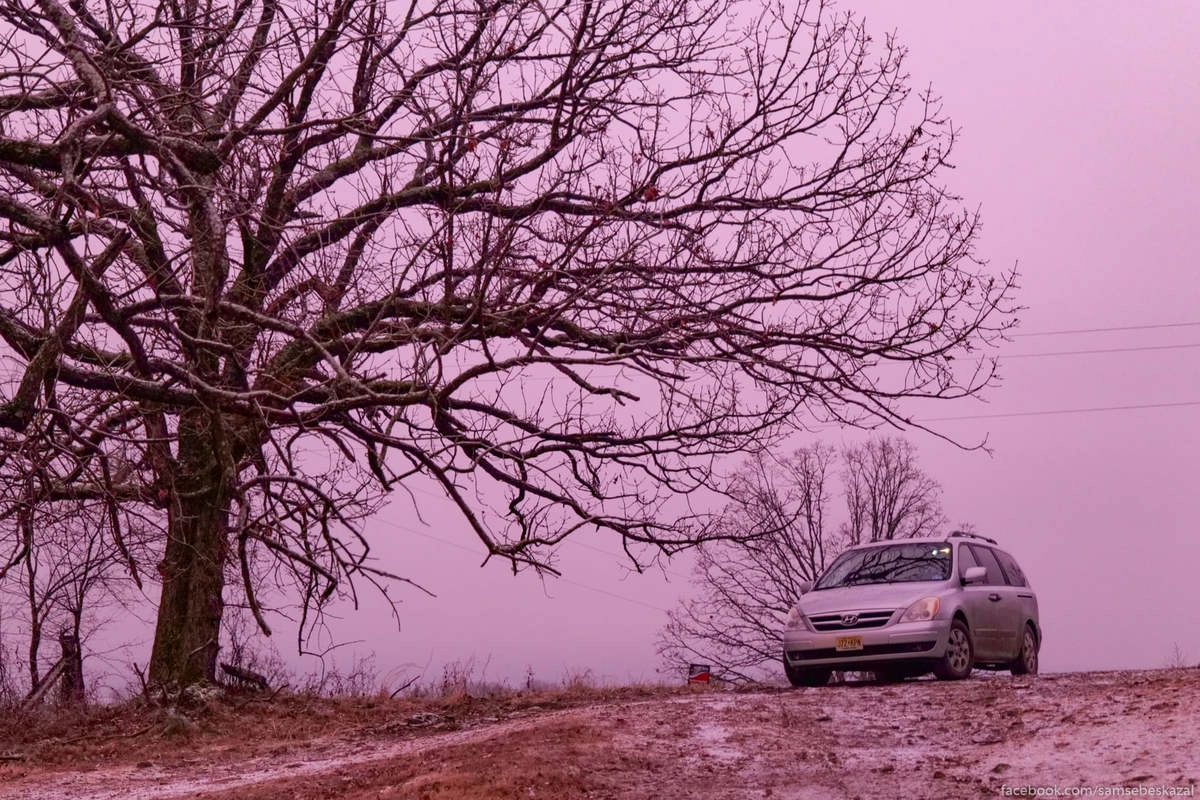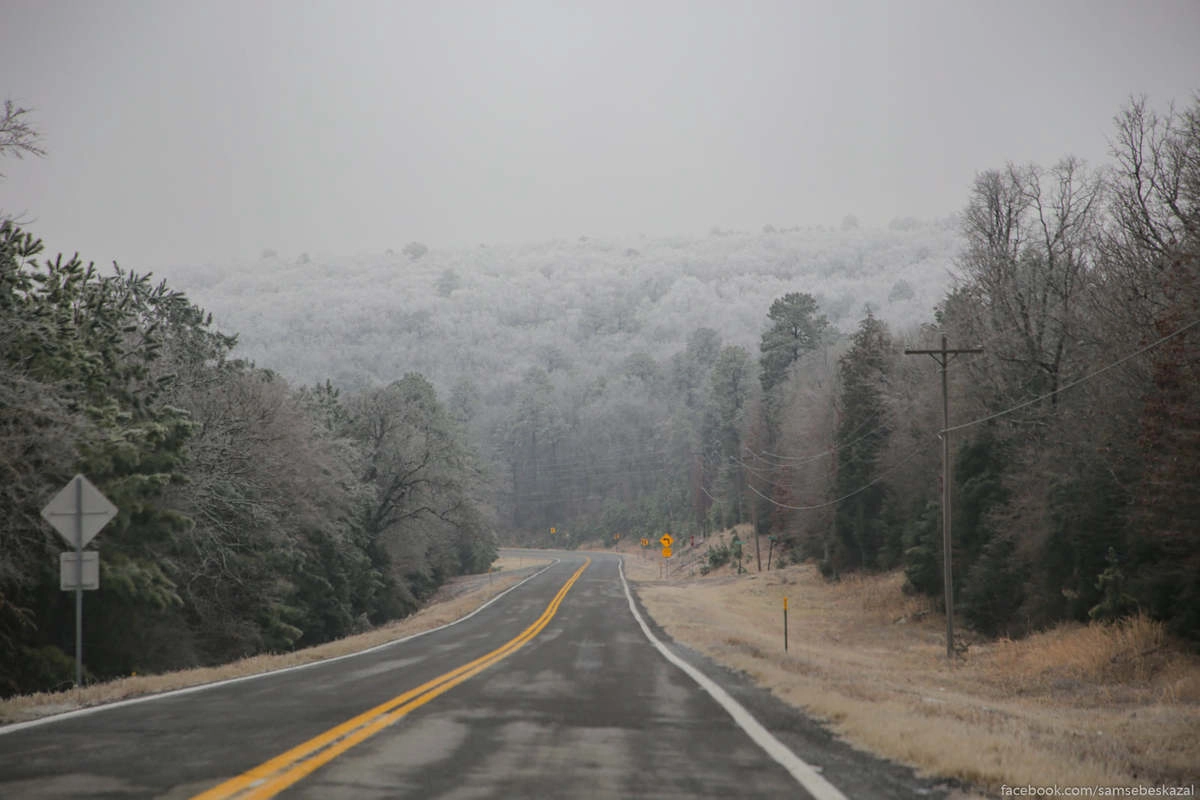 В тех краях нет зимы в нашем понимании, зато много ледяных дождей (это когда минусовая температура и идет дождь) от которых все покрывается красивой белой коркой. Мы попали туда как оказалось в самых холодные дни. Потом этим же холодным фронтом по полной программе накрыло Техас.