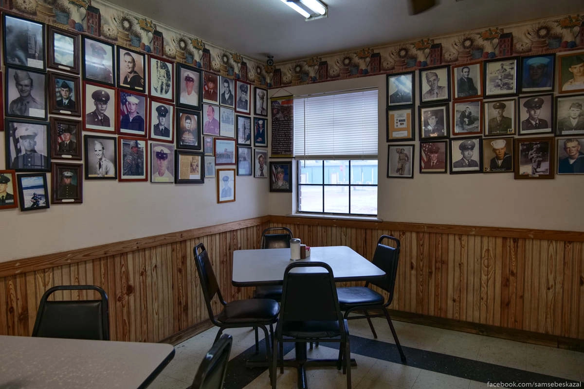 Стены ресторана покрыты фотографиями ветеранов разных войн. От Первой мировой до Афганистана.
