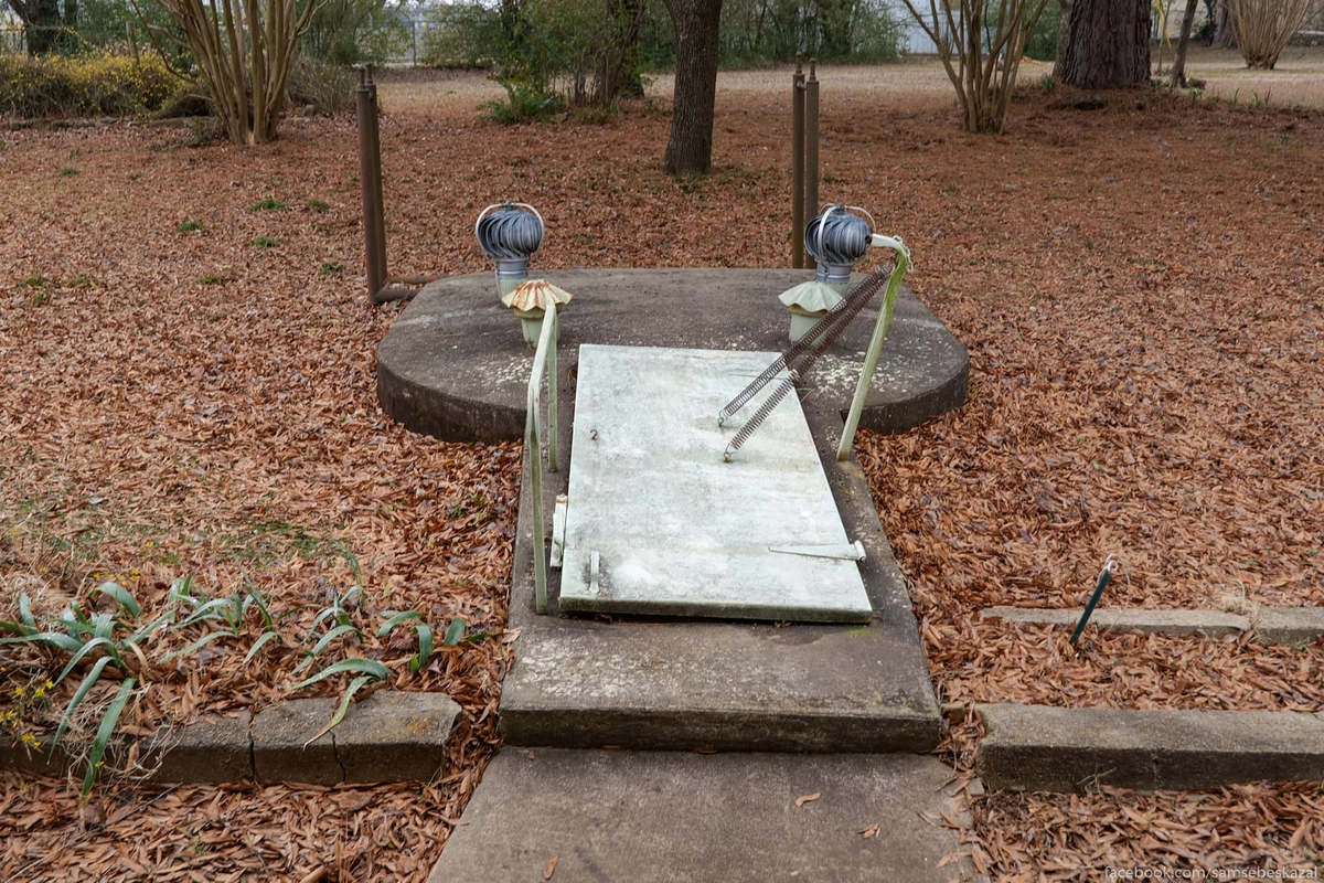 Персональный бункер для того, чтобы спрятаться на случай торнадо. Они есть не у каждого дома, но убежища от торнадо встречаются довольно часто. Бункер тоже есть на видео.