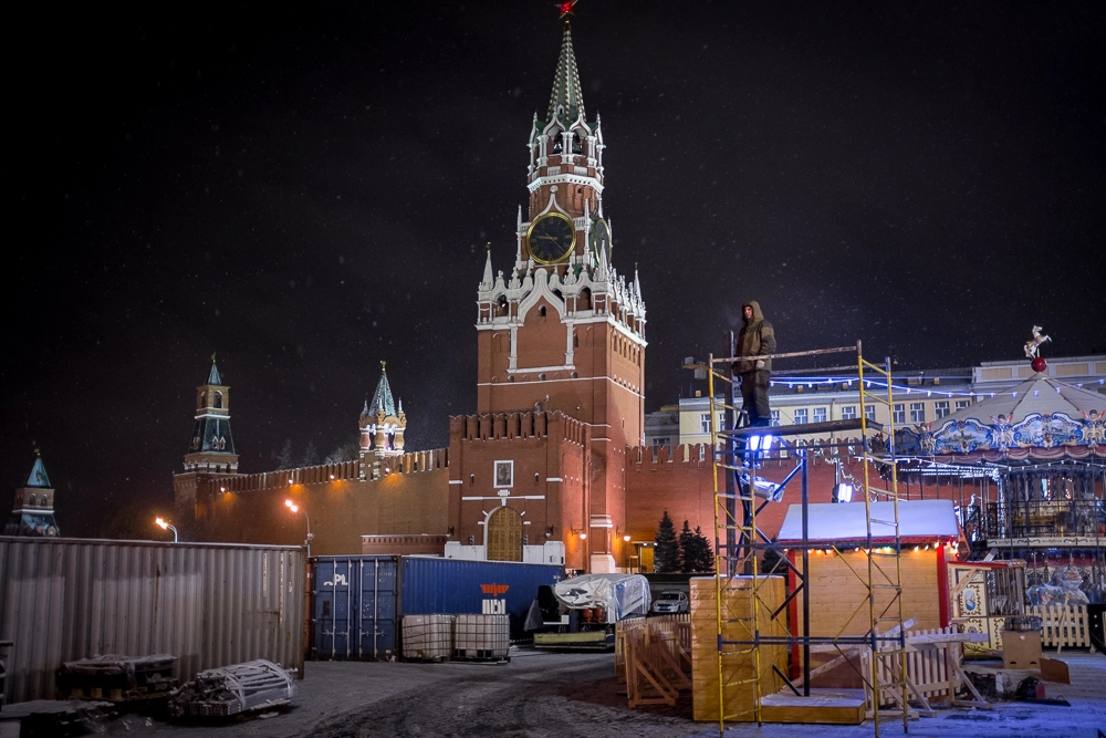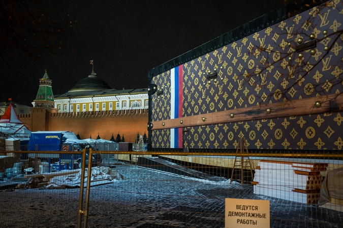 С этим чемоданом все уже так достали за минувшую неделю, что не удержался и сам заглянул вечерком на Красную площадь, чтобы посмотреть, насколько это действительно чудовищно и безвкусно. Правда, что чемодан получился такой вызывающе огромный, даже выше шкатулки с надписью «Ленин»?.. Оказалось, нет. Сначала и не увидел его за постройками очередного катка. Подумал даже, как оперативно – только из-за стен Кремля чуть поворчали, так и снесли… Нет, стоит, родимый, рядом с Историческим музеем! Но таблички на ограждении уже гласят: «Ведутся ДЕМОНТАЖНЫЕ работы»… А совсем неподалеку от него, на Васильевском спуске, Иосиф Кобзон и огромная массовка снимаются вликующем клипе к Олимпиаде. Так что все буднично на Красной площади, без всяких там арт-провокаций…