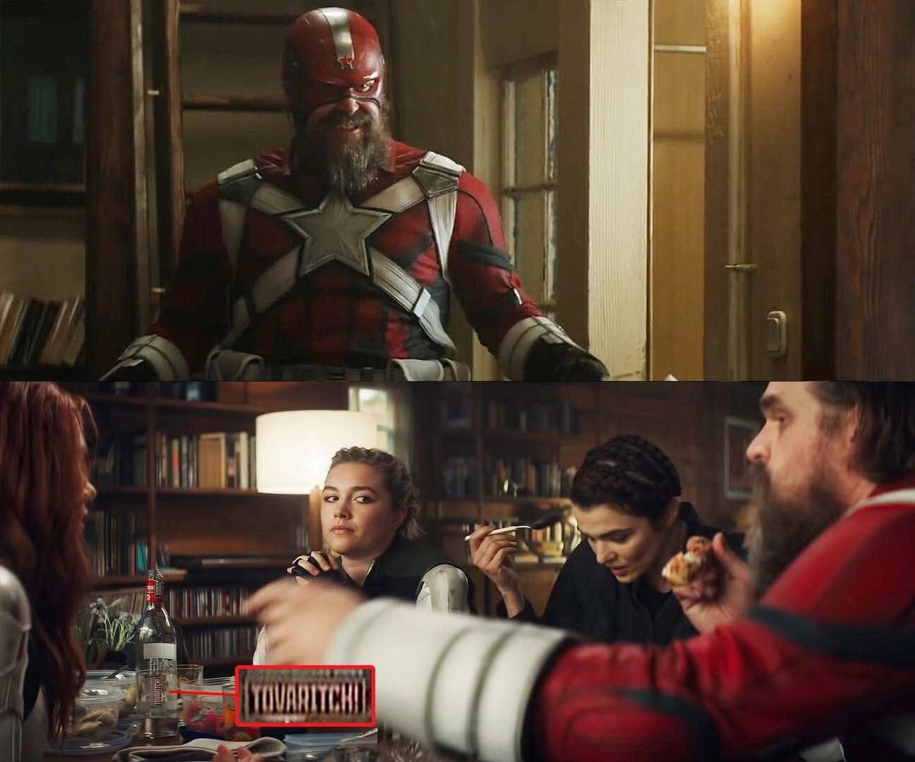 Много внимания уделяется ее родителям, особенно отцу — Красному Стражу, которого сыграл известный по «Очень странным делам» Дэвид Харбор. Играет он хорошо, но создатели слишком уж увлеклись «клюквой», сделав человека — пародию на пародию, который мнит себя русским супергероем, пьет водку «Tovaritch!» и бесконечно ноет.