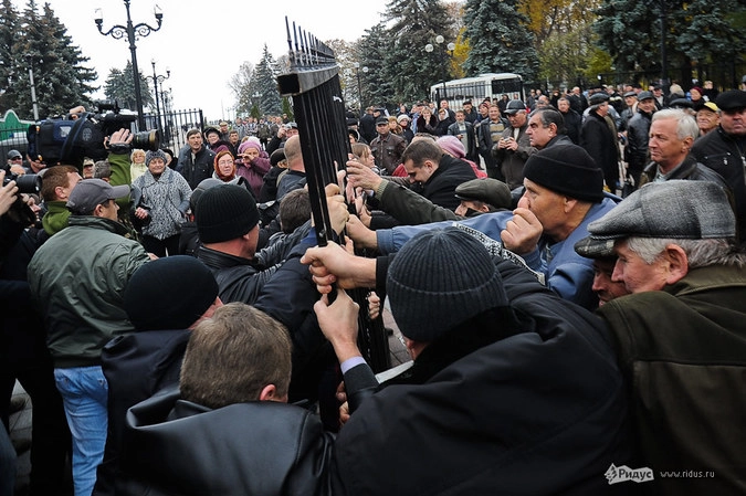 Как сообщает РИА "Новости", нескольким протестующим удалось прорваться за ограждение, однако милицейский спецназ преградил им путь. Спустя некоторое время протестующие предприняли вторую безуспешную попытку прорыва к зданию украинского парламента.