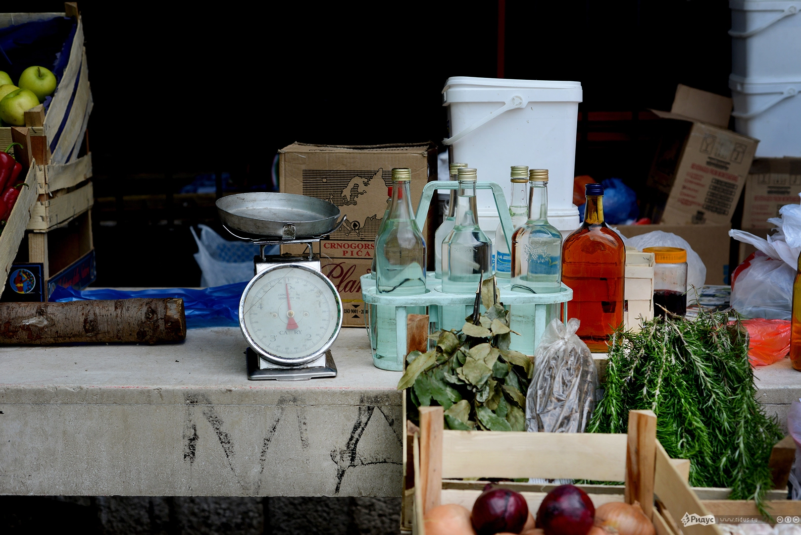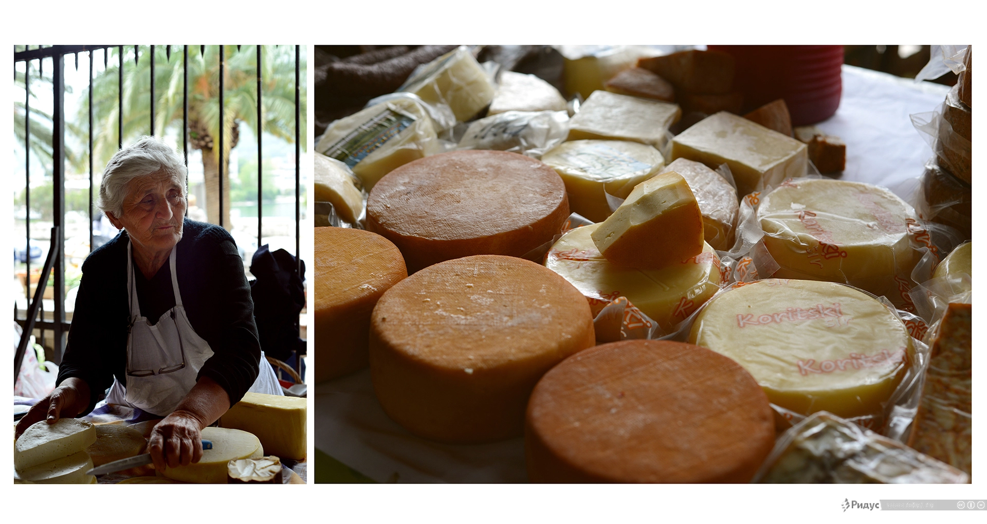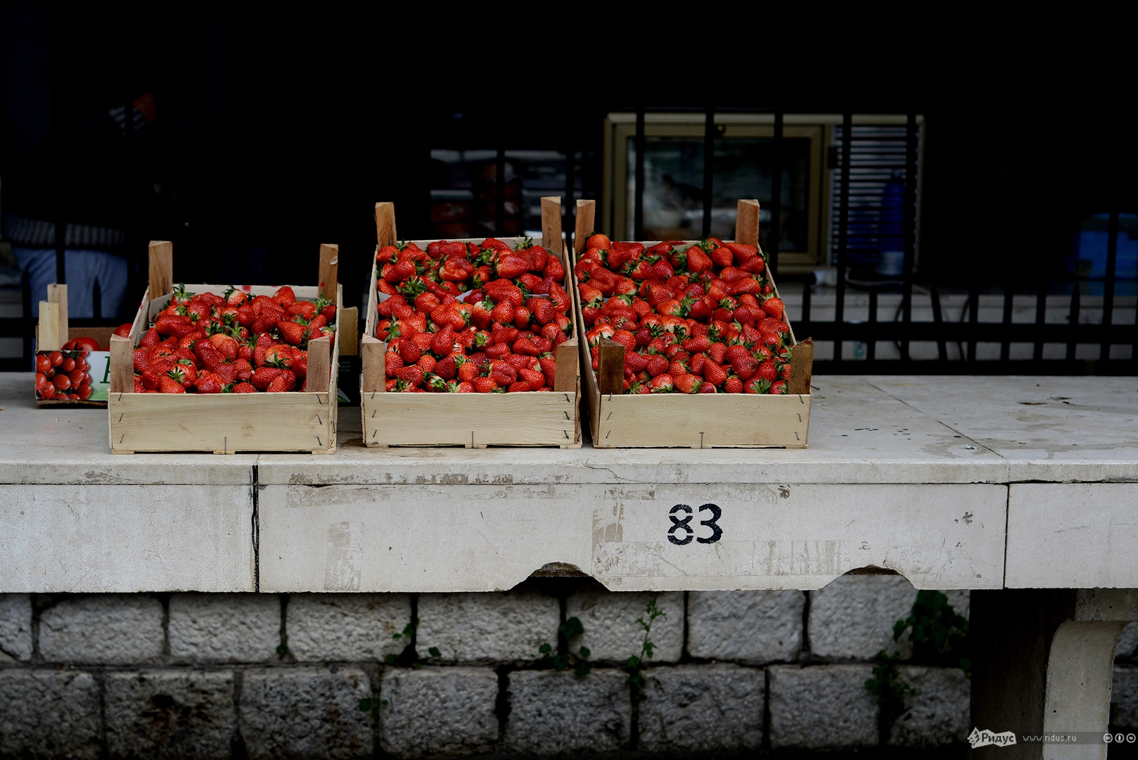 На рынке всё как обычно: свежая рыба, овощи-фрукты, дешёвая и вкусная клубника, и, конечно же, домашний пршут и домашний сыр. Мне, например, не нравятся сильно солёные продукты, такие как местный сыр и мясо.