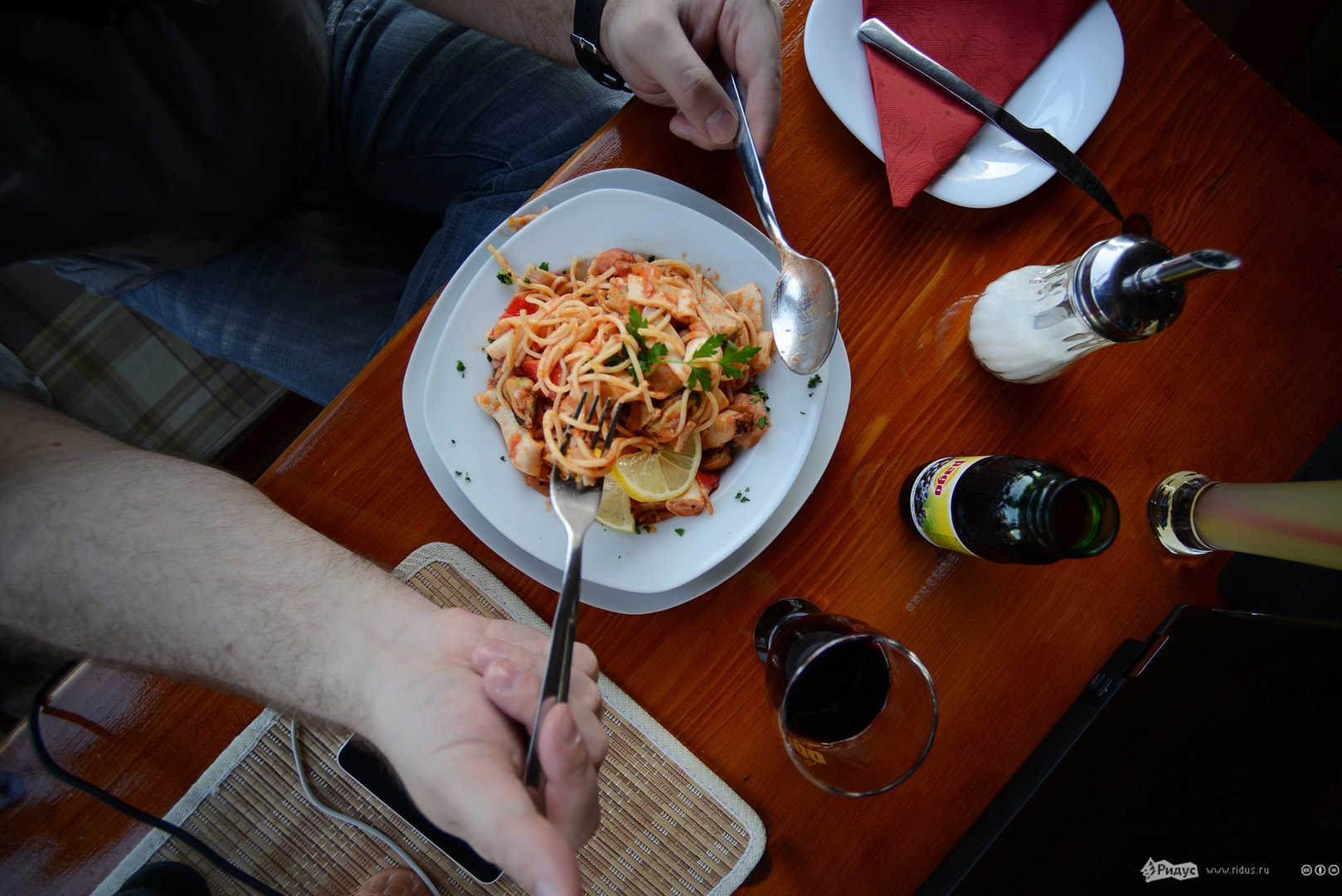 Как ни странно, Италия повлияла не только на черногорскую архитектуру, но и на кухню. У нас много итальянской кухни (паста, ризотто, супы), много классических рыбных блюд, а также с недавних пор пользуется популярностью японская кухня. Лично я раньше не мог её воспринимать, а теперь очень полюбил суши. К примеру, сюда (показывает на заведение за окном) я хожу с семьёй почти каждый вечер.