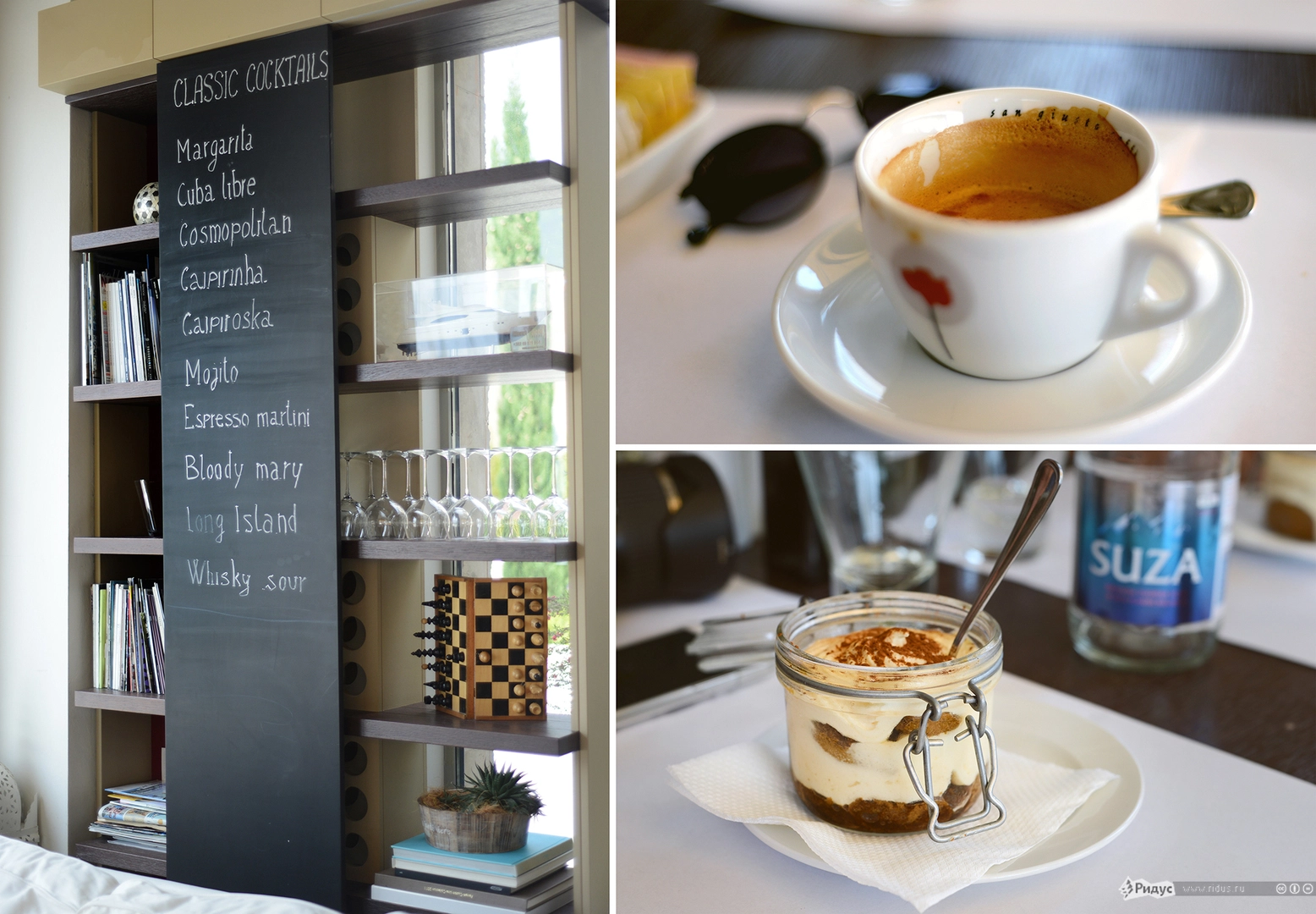 Кафе отличаются современным дизайном, все здания имеют отделку из натуральных материалов, что позволяет многочисленным сооружениям не выбиваться из общего горно-морского пейзажа.